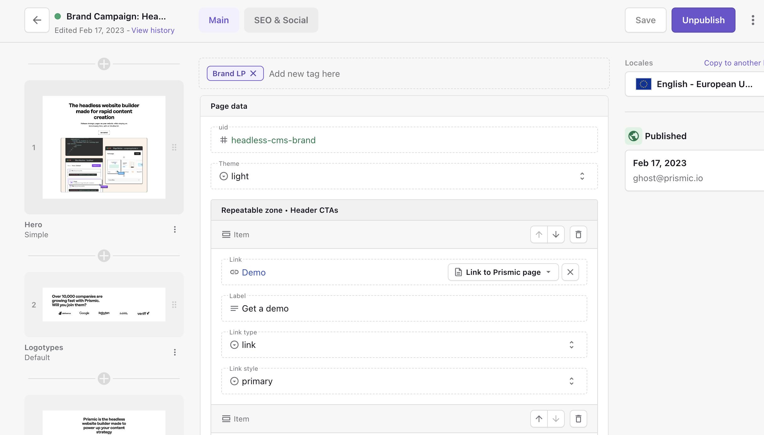 Team has implemented the light revision history. This means that users can see all the previous version of their page in legacy wroom and restore a version in the Page Builder)